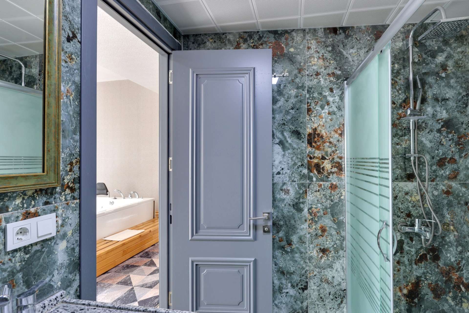 Suit oda, 1 yatak odası, 1 salon odası, 1 WC ve 1 banyo ile donatılmıştır. Banyoda büyük bir termal küvet bulunmaktadır, böylece günün yorgunluğunu atmak için harika bir fırsat sunmaktadır. Yatak odasında 2 kişilik yatak, gardolap ve şifonyer, Led TV gibi birçok olanak mevcuttur. Bu odada konforlu bir uyku için gerekli tüm özellikler mevcuttur.