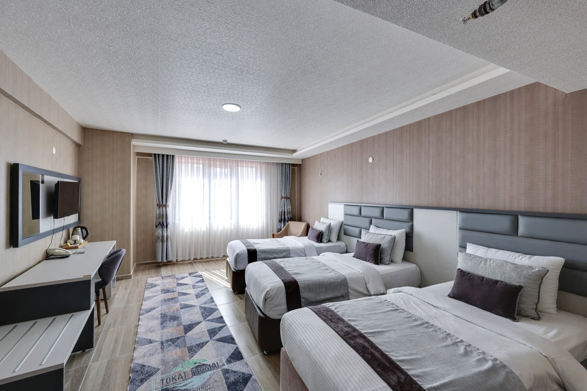 Tokat Termal Otel’de konaklamanız boyunca keyifli ve rahat bir tatil geçirmek için standart odaları tercih edebilirsiniz. Konforlu yatakları, modern özellikleri ve rahat alanı ile standart odalar, konukların tatillerinden tam anlamıyla keyif almalarını sağlayacaktır.